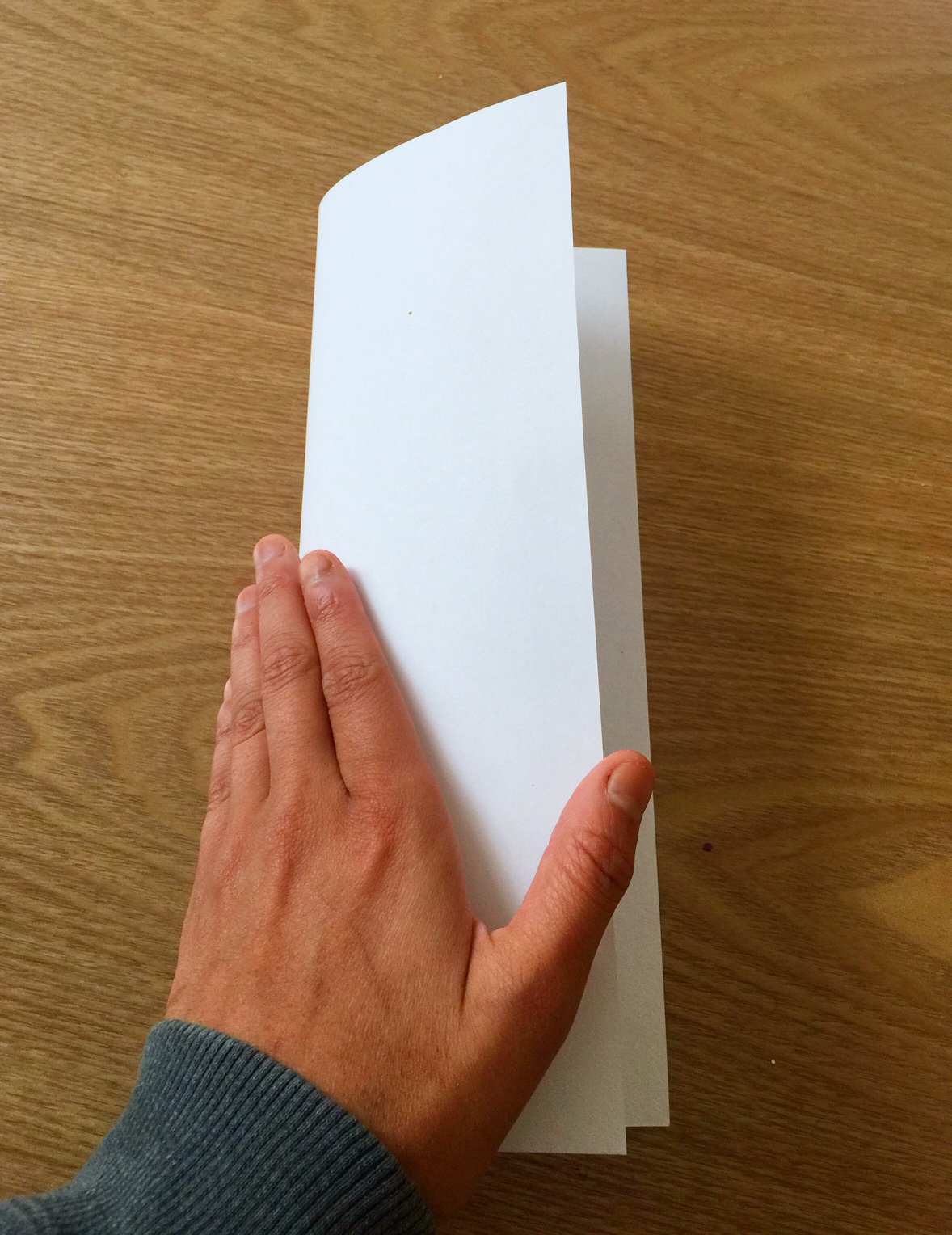 Fold your white (or whichever color you choose first) piece of paper, in half, the long way.