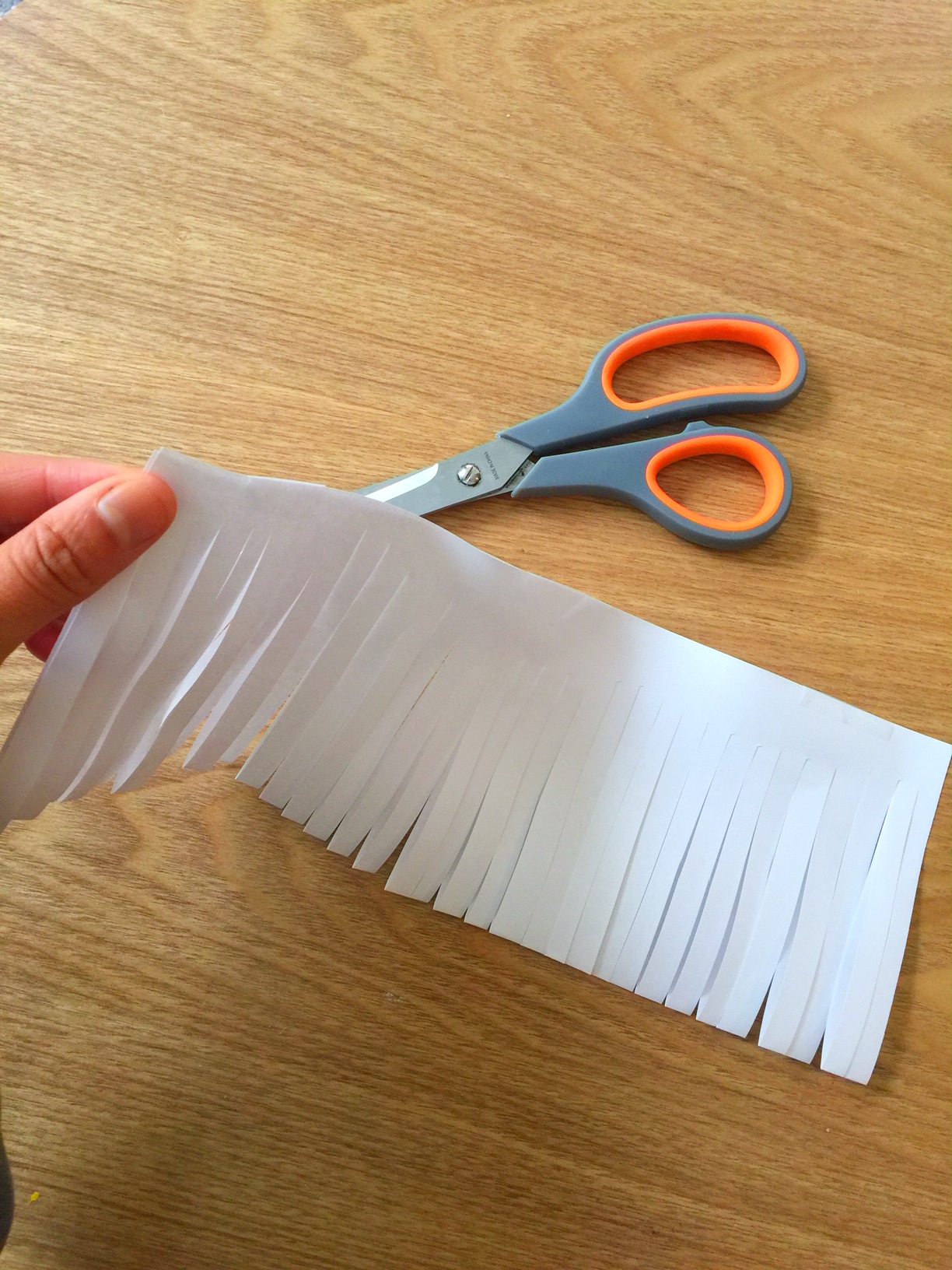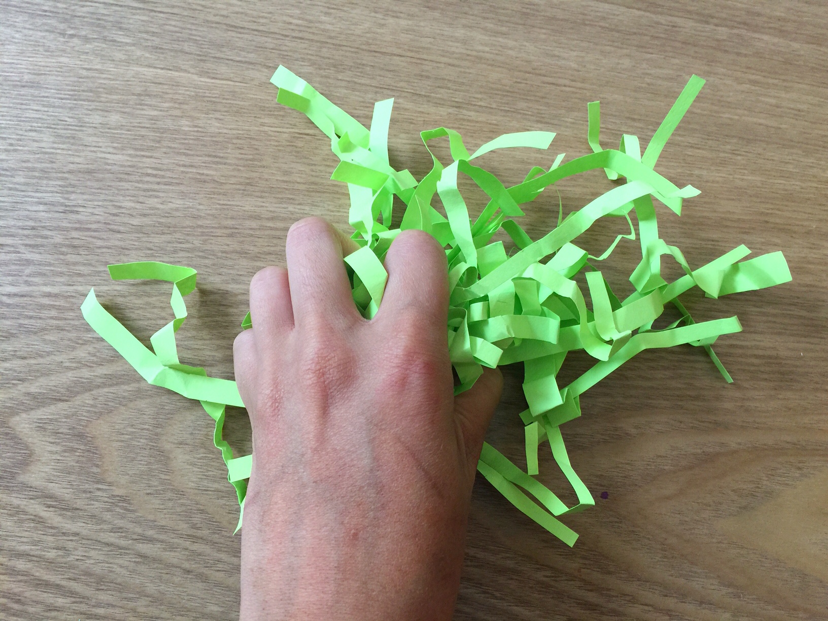 Cut strips of lime green construction paper and scrunch, with your hands.