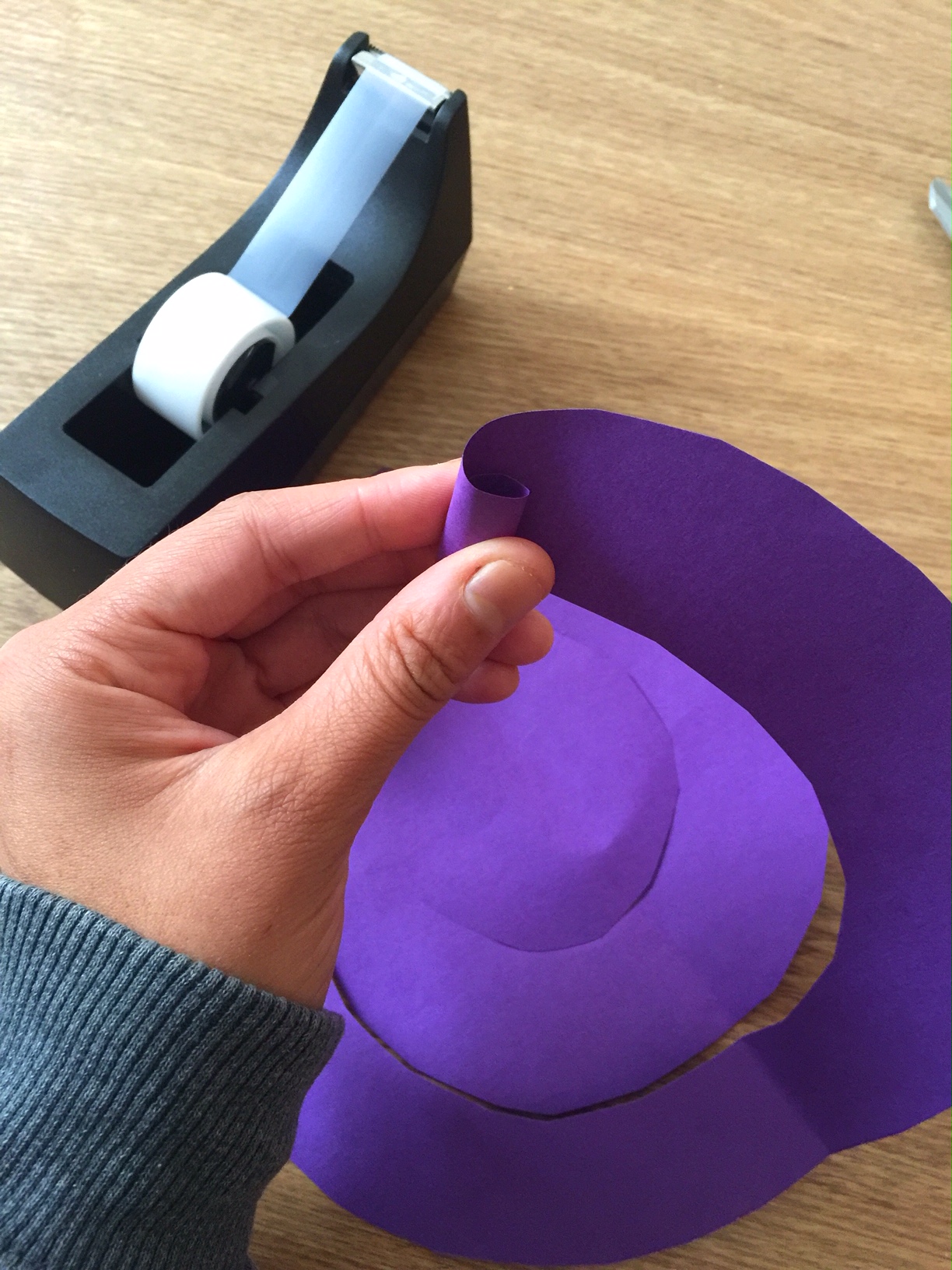 When you get to the circle in the middle of your spiral, glue it to the bottom of your spiral. It will look like this when you’re finished.